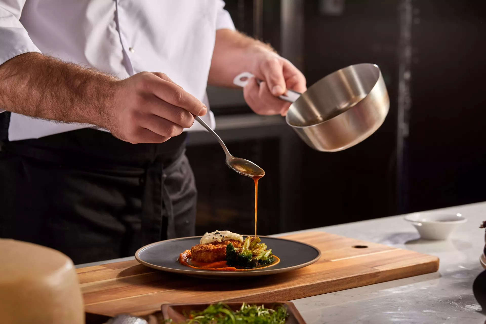В меню ресторана представлены как традиционные кавказские блюда региона, так и классические блюда европейской кухни.